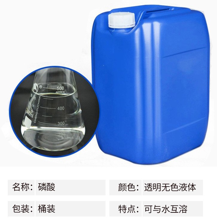 金屬表面鋼管磷化處理,配制電解拋光液和化學拋光液;鋁制品的拋光;制造各種磷酸鹽、飼料級磷酸氫鈣、酸式磷酸錳、焦磷酸鉀;醫(yī)藥工業(yè)用于制造甘油磷酸鈉、磷酸鐵,制造青霉素時調(diào)節(jié)酸堿度;用于制造磷酸鋅作為牙科補牙時粘合劑;塑料用于酚醛樹脂縮合的催化劑Chemicalbook;染料及中間體生產(chǎn)用的干燥劑;印刷用于配制揩去膠印彩印版上污點的清洗劑;火柴用于浸漬火柴梗,能使燃燒過的火柴梗不成灰而成炭狀,使用時較為安全;冶金用于生產(chǎn)耐火泥,提高煉鋼爐壽命;橡膠用于漿料的凝固劑及生產(chǎn)無機粘結(jié)劑的原料;涂料用于金屬防銹漆;食品工業(yè)用作酸性調(diào)味劑。